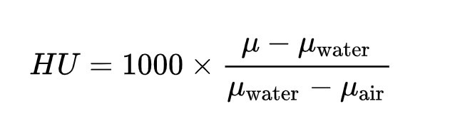 Implementing a CT slice viewerThe Computed Tomography (CT) DICOM files contain both data => Hounsfield Units (HU) matrices, and metadata => information on patients, CT scanner used, etc. The HU scale represents a linear transformation of the X-Rays attenuation coefficient μ. Thus, distilled water at standard pressure and temperature (STP) is defined as 0 HU, while the radiodensity of air at STP is defined as −1000 HU.